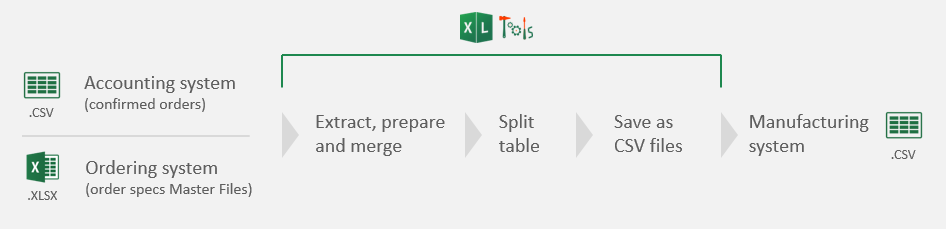 В примере ниже, мы сократили 3-х часовой процесс обработки данных вручную до автоматизированного процесса, который занимает меньше 10 минут. Описанный пример выполняет один человек. Помимо этого, у нас еще 5 сотрудников регулярно используют XLTools для других задач.