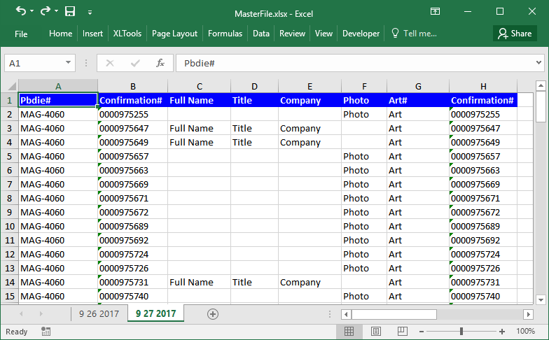 Спецификации заказов поступают из системы размещения заказов в файле MasterFile.xlsx. Этот сводный файл состоит из множества листов; каждый лист содержит заказы, размещенные за один день.